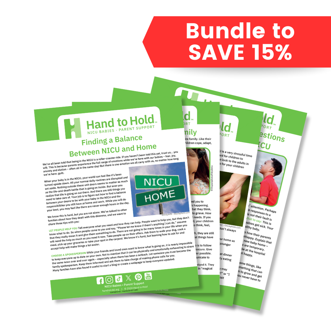Whether purchased individually or as a set, these articles help you equip families with the knowledge, confidence, and emotional support they need during and after their NICU journey.