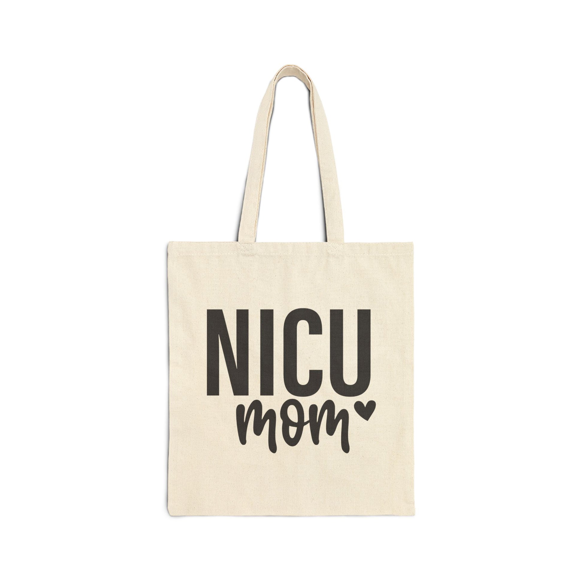 Our NICU Mom tote bag comes in one size – 15" x 16"– perfect for everyday wear. The canvas material is durable and will last for years. The bag features 20" handles made from the same canvas.
